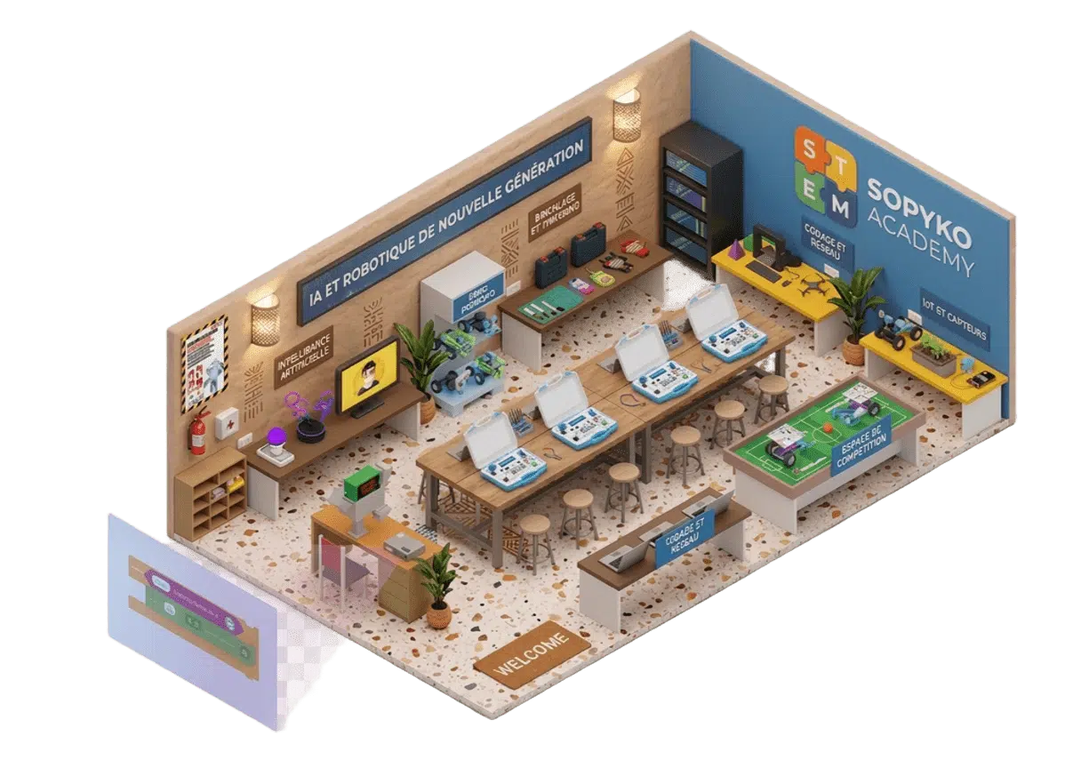 Avec Sopyko Study, votre établissement a désormais la capacité d’organiser des ateliers de codage, robotique, programmation et intelligence artificielle pour vos élèves.